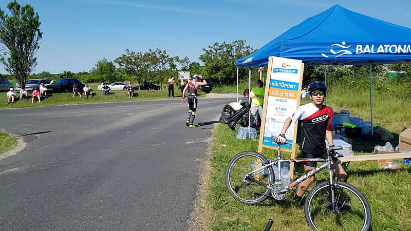 Za minutu po nás na občerstvovačku autem doráží i zbytek týmu. Nalévám do sebe ledově studenou kolu, kterou přivezli, a syn Patrik se k Petrovi přidává na kole, takže teď mám podporu dvojnásobnou.