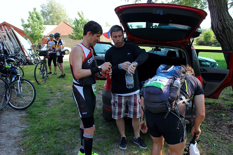 Tentokrát je moje radost o to větší, že se o ni mohu podělit s více lidmi. Následuje třesení rukama, objímání a vše ostatní, co je nutné po absolvování takového závodu. Sedám na lavičku – docela by mne zajímalo, co teď běží hlavou bráchovi a synovi. O Petrovi představu mám, ale co oni? Mají teď před sebou trosku, i když šťastnou.